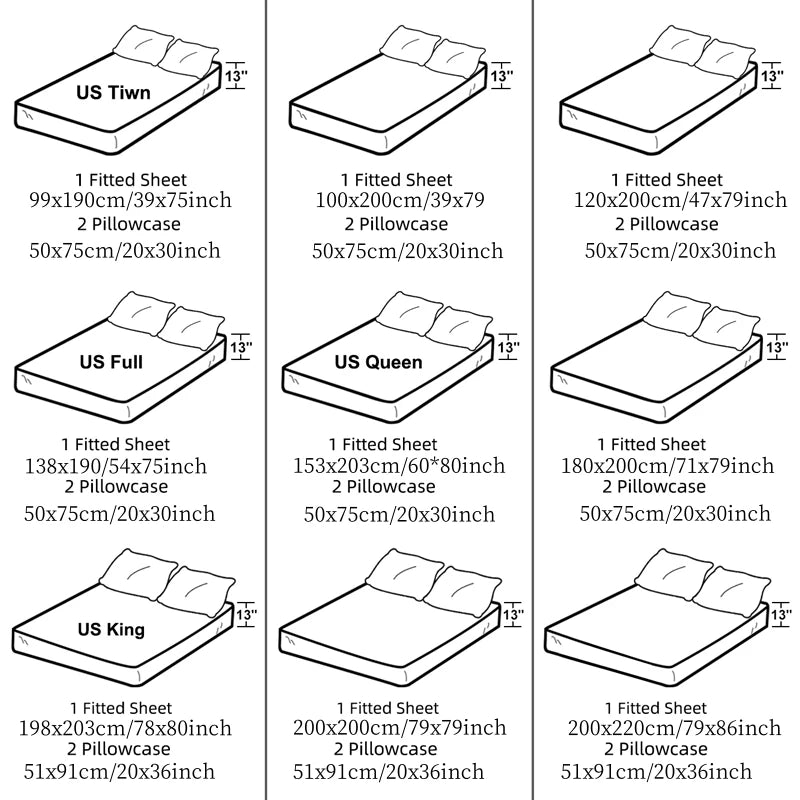 3PC Floral Bed Sheet Set Bedroom Printed Bed Cover 100%Polyester Elastic Band Around Mattress Cover King Size Bed Cover