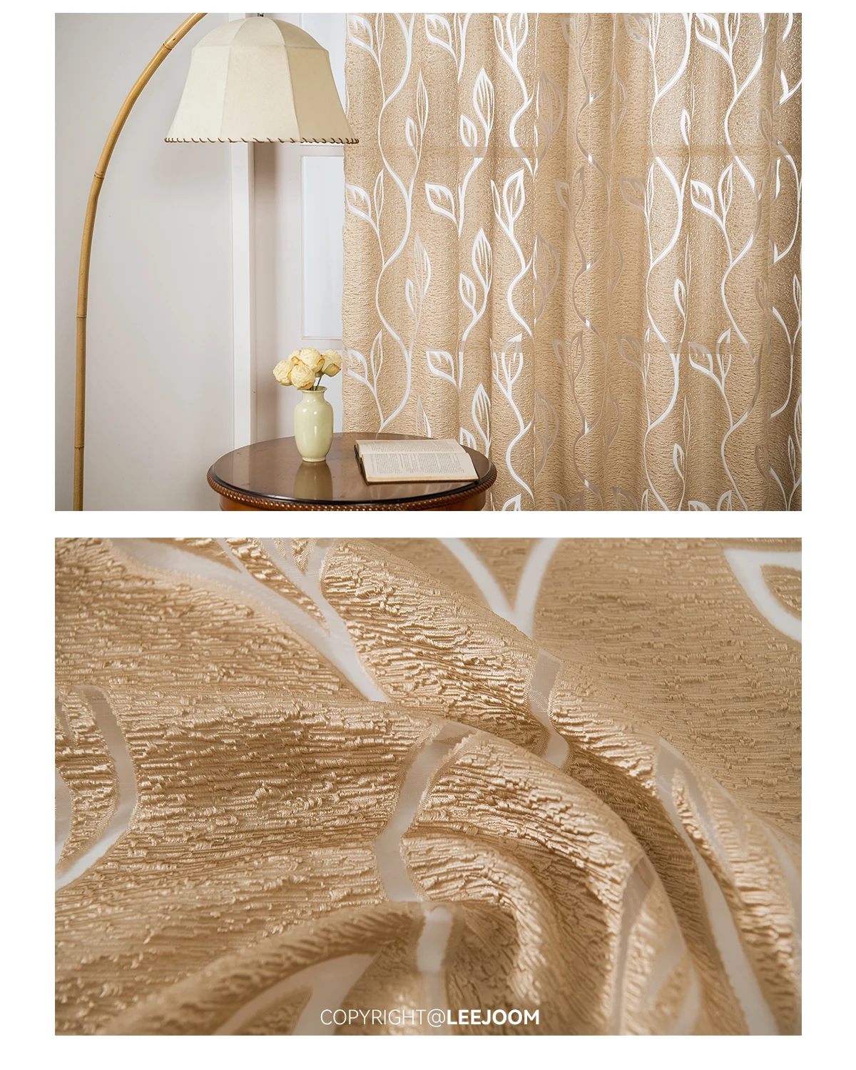 European Jacquard Curtains for Living Room Hollow Leaf Curtains