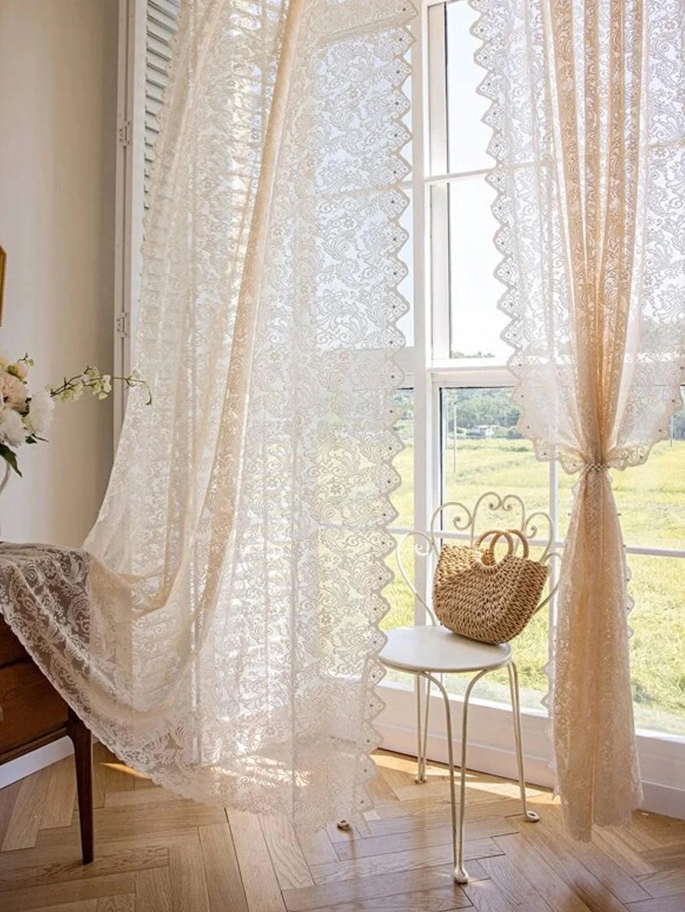 French New Style Lace Beaded Gauze Curtains Curtains 1PC