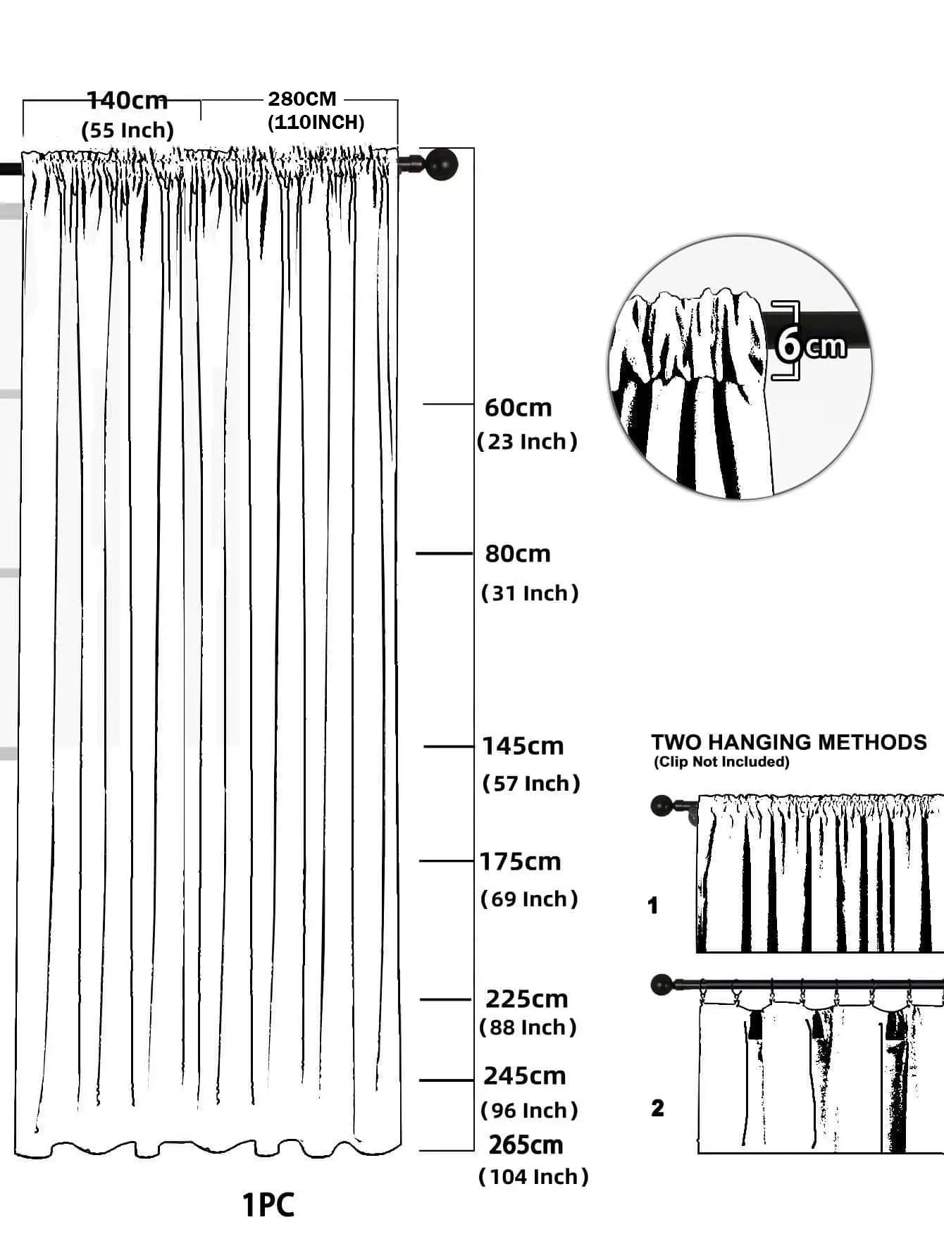 3.Please allow slight deviation (1-3cm) due to hemming.