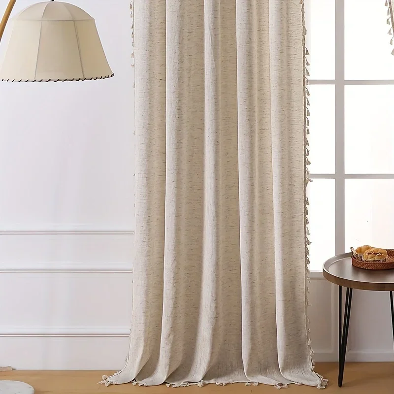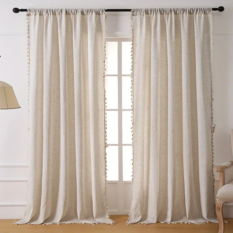 Solid Color Linen Plus Fringe Curtains